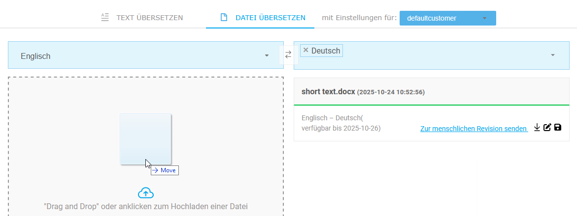 Übergeben Sie automatisch übersetzte Dateien mit wenigen Klicks und pro gewünschter Zielsprache in die menschliche Revision.